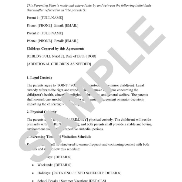 Declaration in Support of Custody or Parenting Plan (California – Pleading Format)