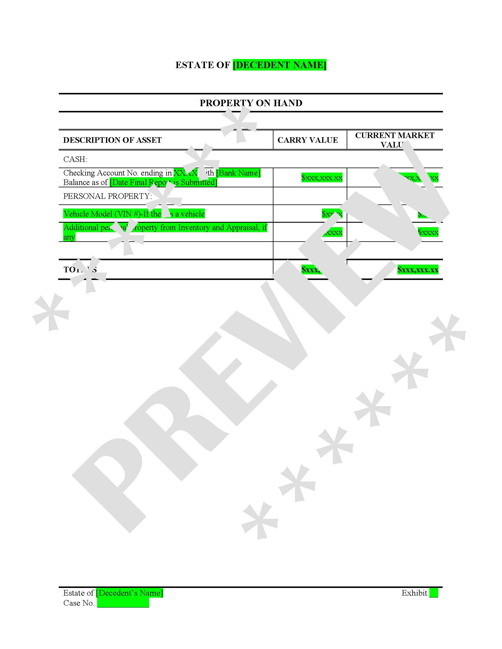 Be the first to review “Probate Final Report Exhibits – Liabilities, Creditor Claims & Property on Hand”