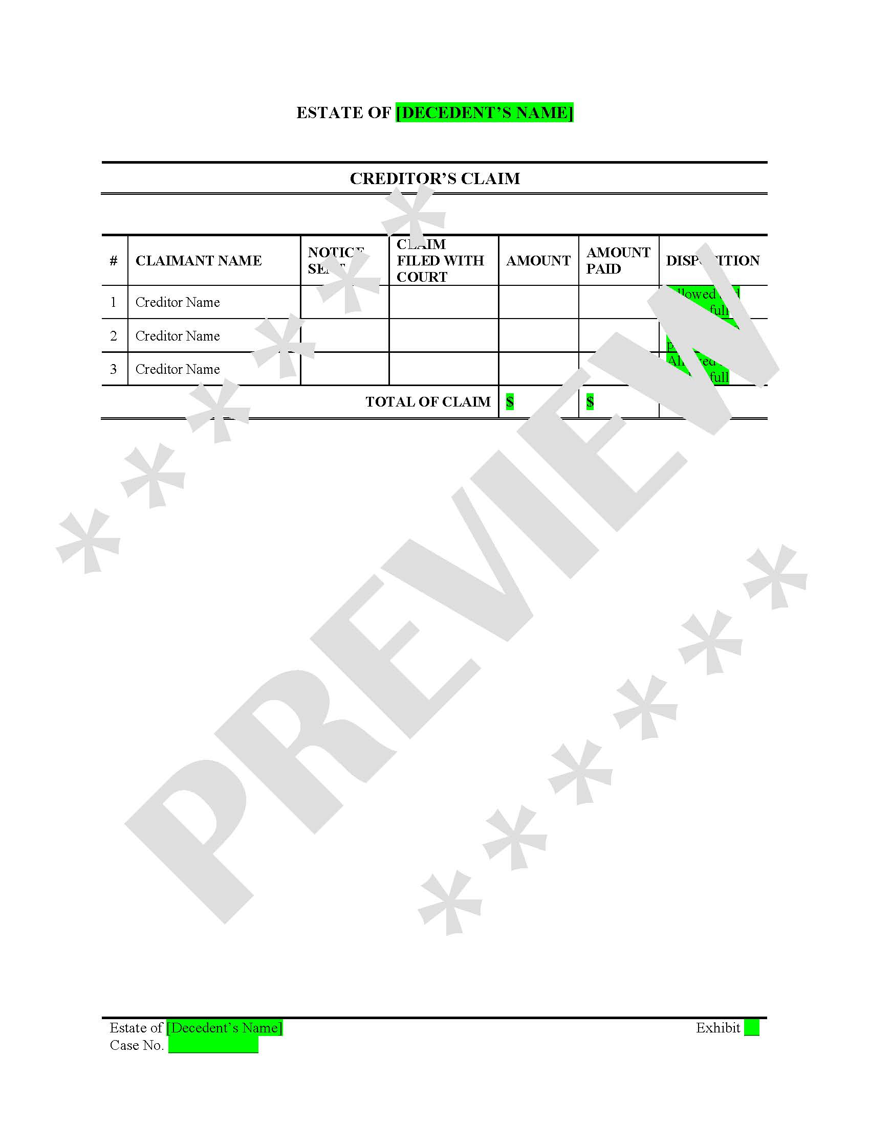 Reduce Errors & Delays – Organized tables ensure accuracy in probate accounting and claim resolution.