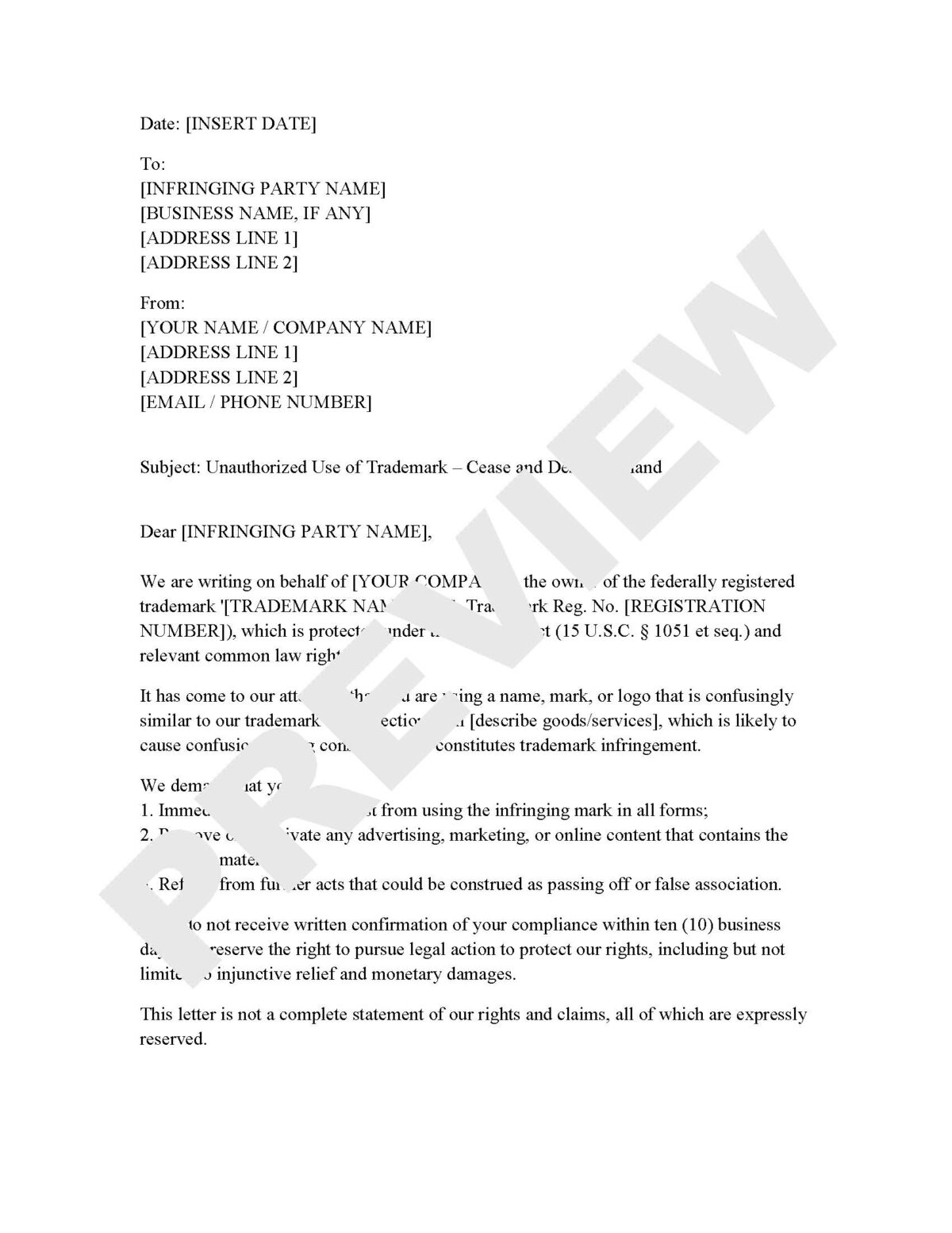 Use this document as a first step toward resolution before escalating to litigation or USPTO enforcement proceedings.