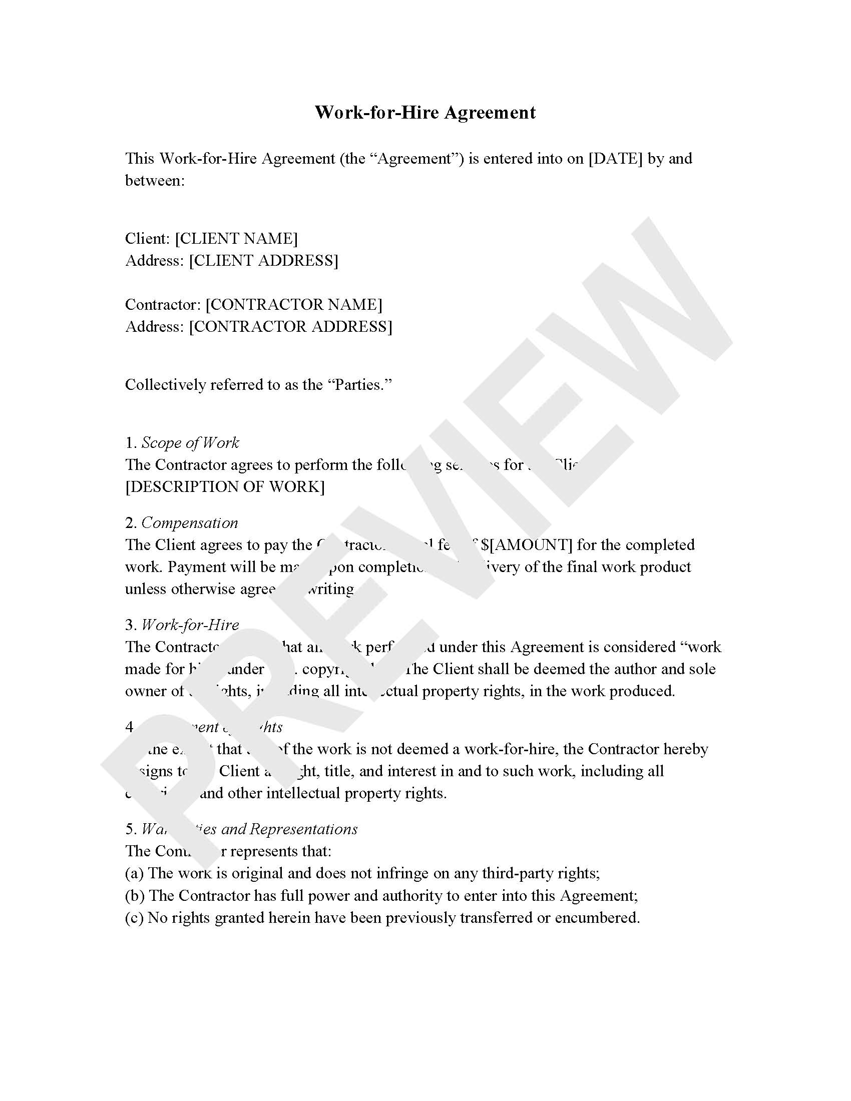 • Contains “work made for hire” clause compliant with U.S. copyright law
